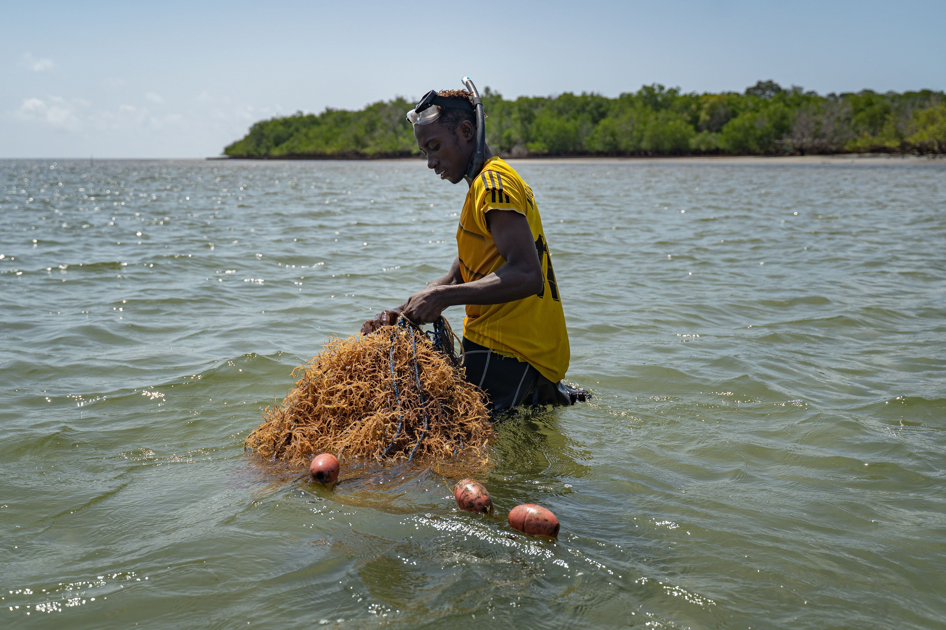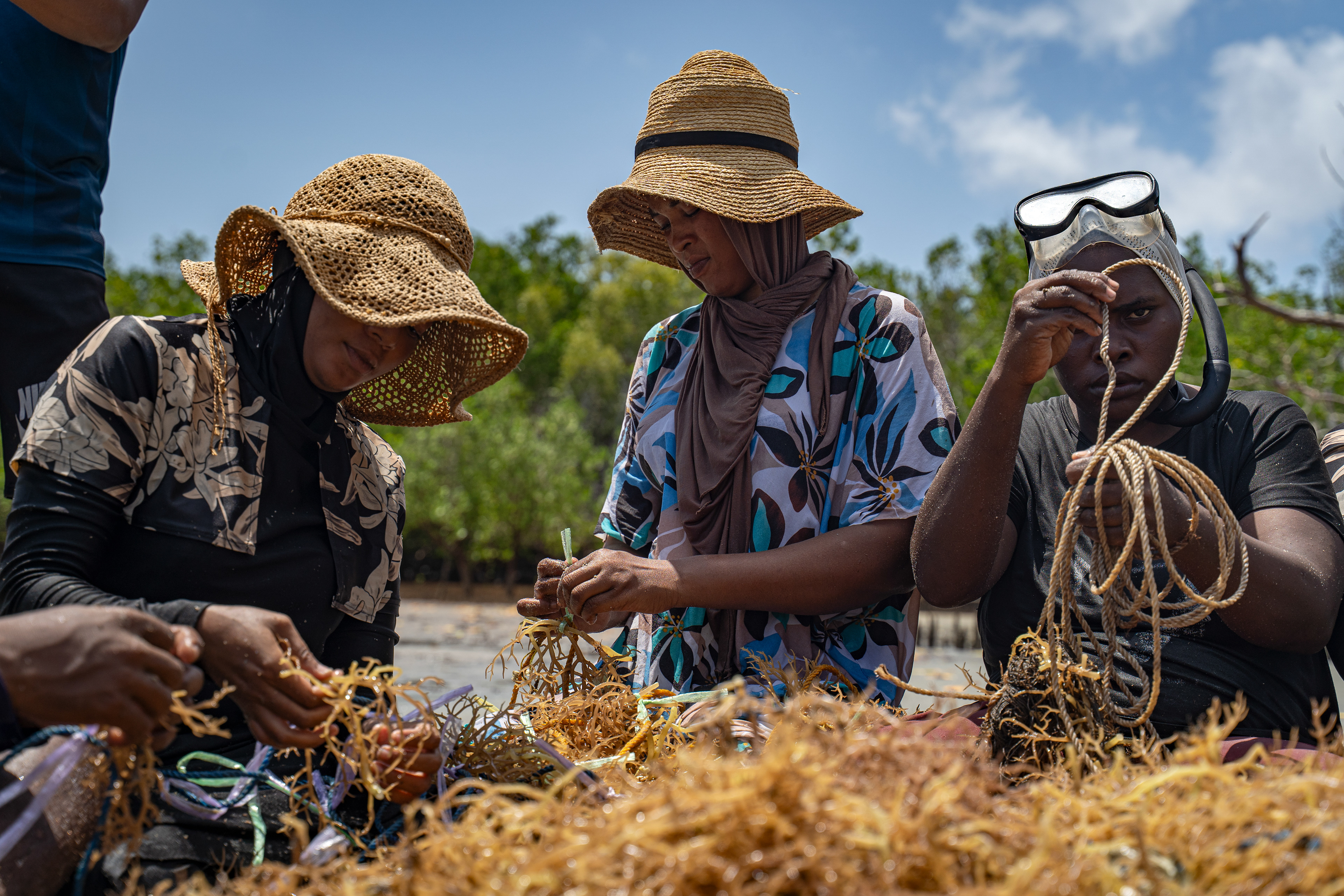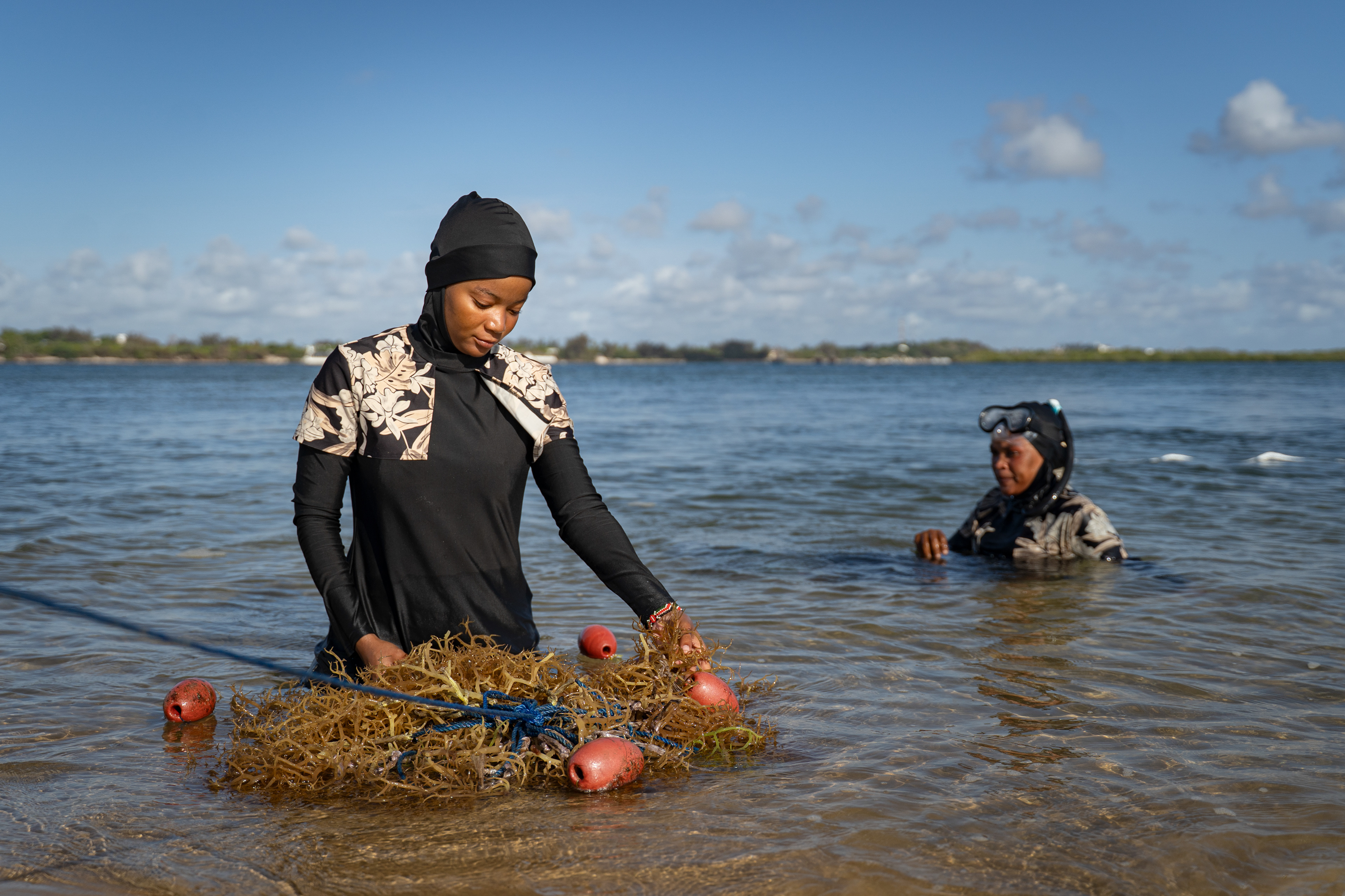 As global demand for seaweed increases, Kenya has seen an increase in farming along its coast. Farmers like these provide the raw ingredients for extracts that end up in everything from skincare products to animal feed. Mawimbi Ocean Innovations, with support from ORRAA, is working to establish a sustainable seaweed industry along the Kenyan Coast.